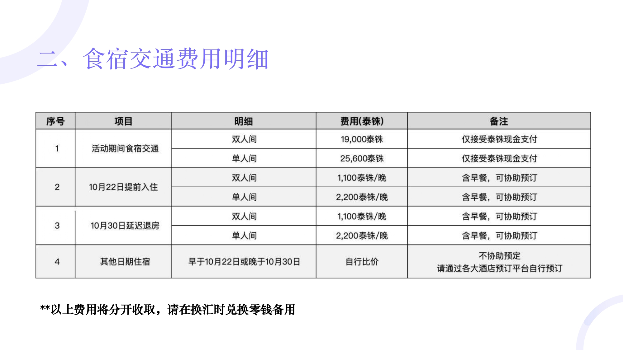 [食住行]食宿费用缴纳相关提示